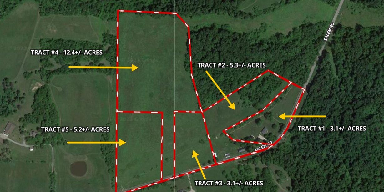Opportunity Knocks w/ this exceptional offering of real estate. This property will be offered in 5 tracts and as a whole, and will sell whichever way nets the seller the most money. The location of this property is outstanding, as you are close to so many things. Seneca Lake is less than 3 miles away, you can be on I-70, or I-77 in just a short drive. The one owner home has had many rooms completely remodeled in the last couple years. The tract breakdown is as follows: TRACT #1 – is 3.1+/- acres with a one-owner home built in 1978. This split-level home offers three bedrooms and two full baths. As you walk into the home, you will notice the exquisite Pro-Via doors that set the stage for an outstanding home. As you go upstairs you will walk into a family room that comes right out of a magazine. Enter the completely remodeled (2021) kitchen and not a detail was left out. All large kitchen appliances will stay with the home, as they fit perfectly with the design. Outside of the kitchen is a covered deck to enjoy a cup of coffee in the morning or a watch the sun set in the evening. Completing the mail floor are three bedrooms and a full bath. The lower level of the home offers a living area w/ fireplace and built in shelves, a full bath, laundry area, office and partial kitchen. Lower level also offers a door that leads to the wonderfully kept back yard. Home has well water, newer central air, newer roof, newer propane furnace, and so much more. There is a spacious front, side and back yards, plenty of room for a garden or even some livestock. There is a two-car detached garage (26’ x 28’), another building (24’ x 24’) that has a partially finished workshop with a lawn and garden storage area. Also on this property is a small animal or dog kennel and a “she” shed. Property is fenced and offers an idealistic setting. You will not be disappointed with any part of this tract!!! TRACT #2 – 5.3+/- acres that is mostly open acreage with a small amount of woods. This tract features the “Farm” buildings. On this tract there is a 24’ x 48’ barn with a man door and an overhead garage door for easy storage. Also 24’ x 36’ pole building with sliding doors for equipment storage and also there is a 12’ x 36’ open face storage shed. This tract offers an ideal building spot (in my opinion), as well as many other uses. TRACT #3 – is vacant acreage containing 3.1+/- acres. There is good frontage on Salem Rd. This property is all open acreage and offers building sites. TRACT #4 – is 12.4+/- acres of tillable of pasture ground. Property has good access to Salem Rd., and is ideal for someone just wanting a “little” more acreage. Several building sites can be found on this property. Room for some livestock or even crop or hay ground. TRACT #5 – is 5.2+/- acres of open and vacant ground with good frontage on Salem Rd. this tract also offers several building sites and multiple uses. OPPORTUNITY KNOCKS!!!